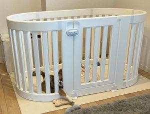 サークルの中からおもちゃをこっちに飛ばしてきたようです。