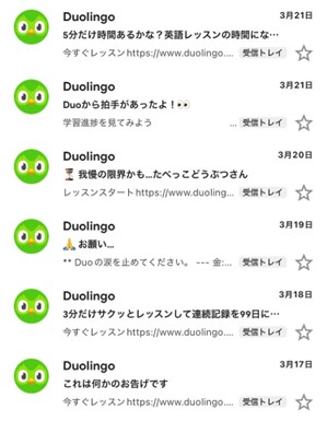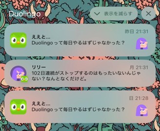 Duolingoはあの手この手でリマインドを送ってくるからです。